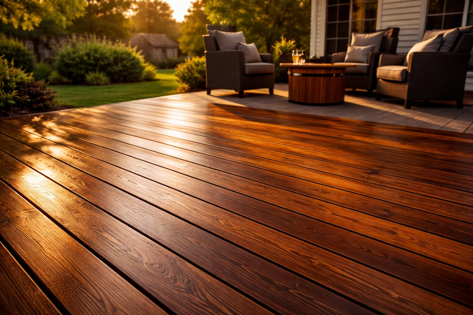 If the stain fails under normal conditions within 5 years, we return and re-stain at no charge. Covers peeling, flaking, and premature fading on every linear foot.